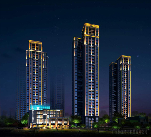 立面燈光:以簡潔明快的線條表現(xiàn)建筑立面的層次,避免過多的燈光對居民夜間正常生活的影響,營造舒適宜居的居住環(huán)境。