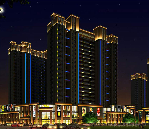 建筑的頂部與底部燈光,突出清晰明亮的建筑遠(yuǎn)景視覺效果,提升建筑夜晚對外的吸引力。