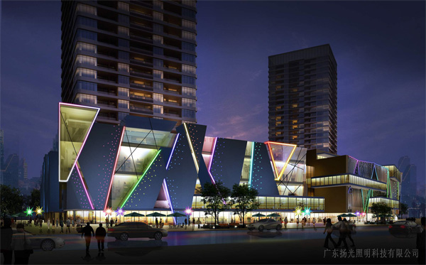 裙樓以商業內透體現其營運功能,渲染熱鬧與繁華的商業氣氛及現代時尚的結構特征。局部選用彩色光源點綴,打造耀眼、繽紛的燈光氛圍。