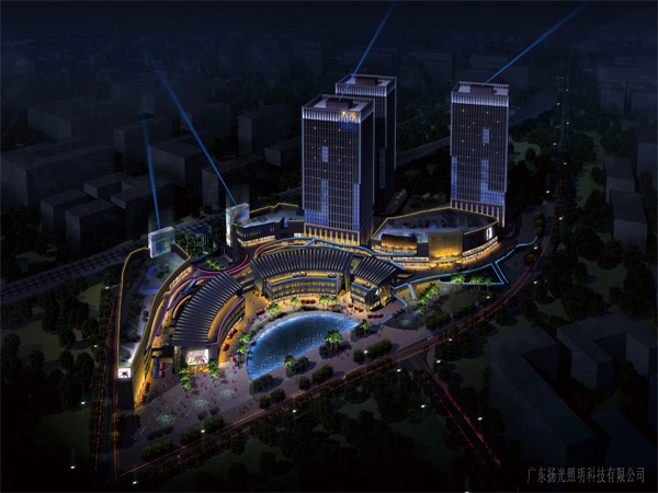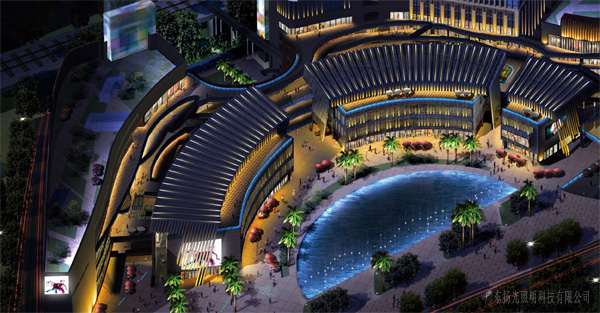 建筑:商業(yè)裙樓東西立面及塔冠為重點(diǎn)照明區(qū),裙樓南北立面商業(yè)內(nèi)街為次照明區(qū)。