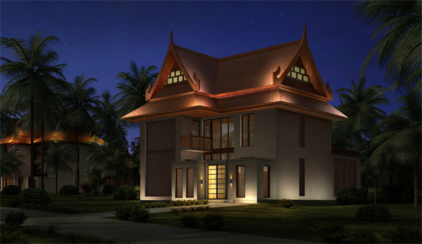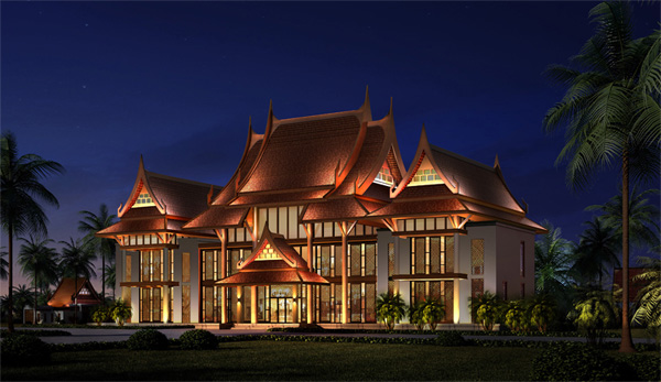 燈光的塑造離不開建筑,泰國館具有鮮明的泰國佛教文化色彩和傳統的民族特色建筑風格。建筑的外墻多以龕窗加以裝飾,與中國傳統建筑中的木架結構相似,屋頂多為懸山式樣,與我國傣族地區的佛殿建筑結構有其相像之處,泰國、西雙版納就有很多類似建筑。