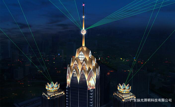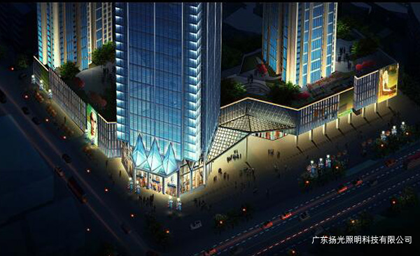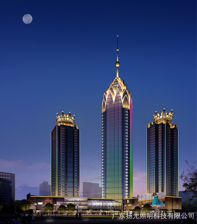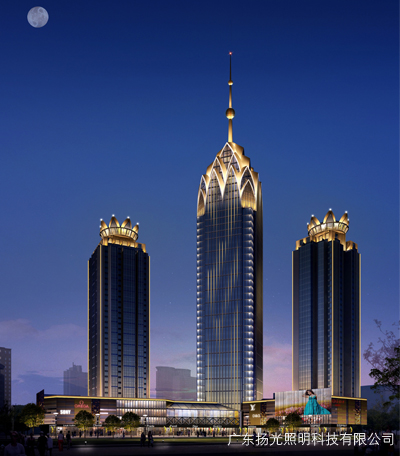 立面燈光主要是連接建筑頂部與商業(yè)裙樓之間的關(guān)系,顯示建筑的高大,挺拔的效果。