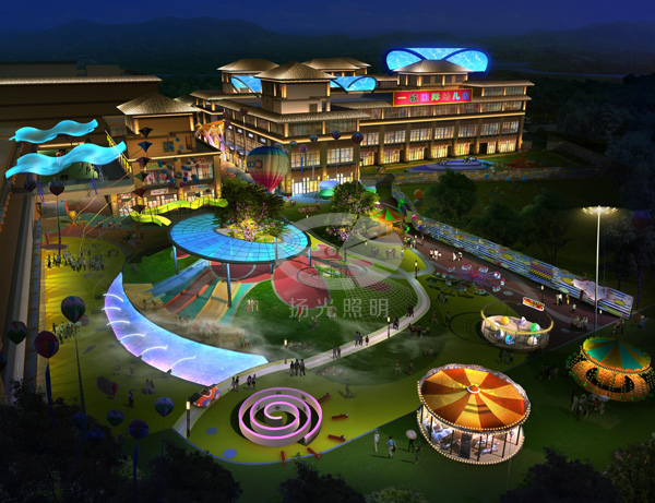 游樂場——采用豐富活躍的燈光,照亮和點綴游樂場內的色彩鮮明的游樂設施。吸引人們的眼球,同時在游樂場上設置高桿燈,以滿足功能照明需求,使在此玩樂的人們不僅能享受游樂園帶來的歡樂,還有一個安全、明亮的燈光氛圍。