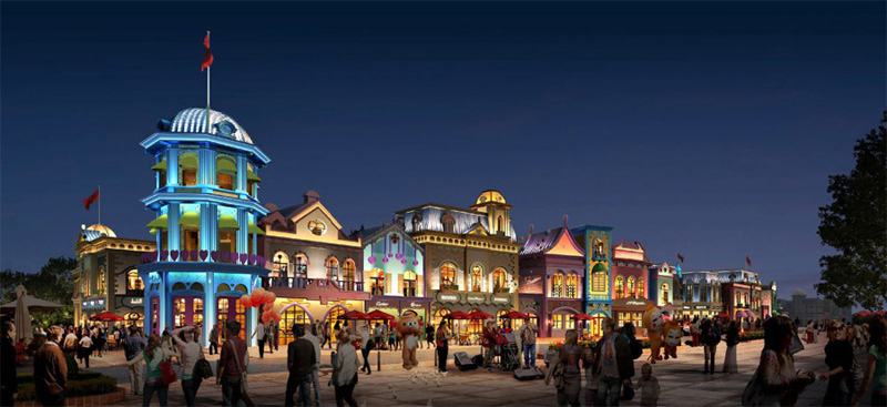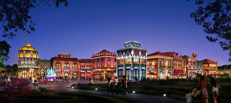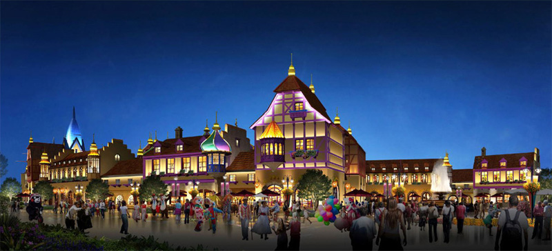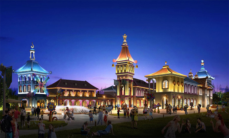 童話大街建筑泛光照明工程項目主要由巴拉莫風格、布達佩斯風格、科隆風格、呂貝克風格、米蘭風格、慕尼黑風格、尼斯風格、紐倫堡風格、托斯卡納風格、熱內亞風格、圣彼得堡風格、尼斯風格等組成,是專為少年兒童打造的旅游項目。