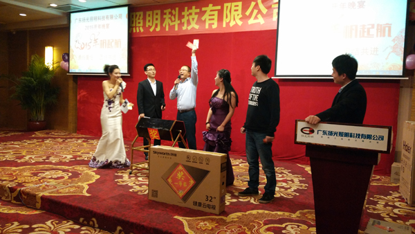 喜悅伴著汗水,成功伴著艱辛,遺憾激勵奮斗,我們不知不覺地走進了2015年。在元宵佳節(jié)來臨之際,揚光照明開年晚宴在東莞會展酒店隆重舉行,揚光照明總經(jīng)理李總,全國多個分公司負責人、全體員工及員工家屬共同出席。 美味的晚宴中伙伴們與家屬共同觀看了揚光照明給大家?guī)淼墓?jié)目,節(jié)目內(nèi)容精彩紛呈。