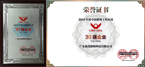 照明工程30強企業”的殊榮,是廣大客戶對揚光