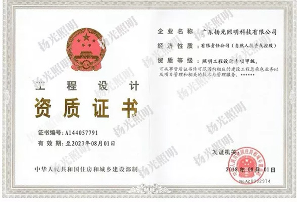 道路照明工程施工壹級,照明工程設(shè)計專項資質(zhì)甲級的“雙甲”企業(yè),“雙甲”資質(zhì)的取得體現(xiàn)了行業(yè)和市場對公司綜合實力的高度認(rèn)可,意味著可以承接任何規(guī)模的