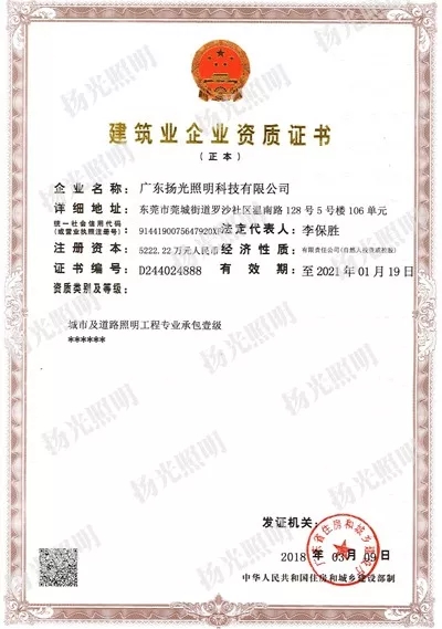 夜景照明行業(yè),堅持誠信經(jīng)營、開拓創(chuàng)新。在揚光人的默默付出、不懈奮斗下,揚光照明積累了豐富的項目管理經(jīng)驗,打造了一支一流的建設(shè)隊伍,培養(yǎng)了一批優(yōu)秀管理團(tuán)隊,鑄就了諸多精品工程,此次“雙甲”資質(zhì)取得,將大大提升揚光照明的綜合實力、竟?fàn)巸?yōu)勢和項目承接能力,為揚光照明帶來更多的項目機(jī)會。
