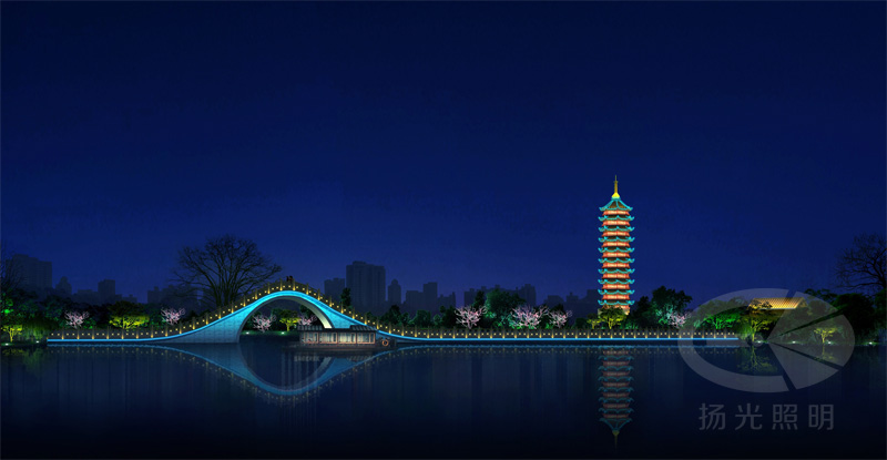 道路照明設計需在滿足國家道路照明標準值的前提下,運用新技術達到綠色節能照明,充分結合藝術美學,使城市光環境提升,營造熱鬧、繁華的氛圍。橋梁照明設計在結合道路照明技術運用下,充分分析橋梁建筑結構特色,用燈光化作畫筆用燈光勾勒出橋梁結構線條美感,用光色去涂繪繽紛的橋梁色彩。展現出鮮明的標志性和獨特性。